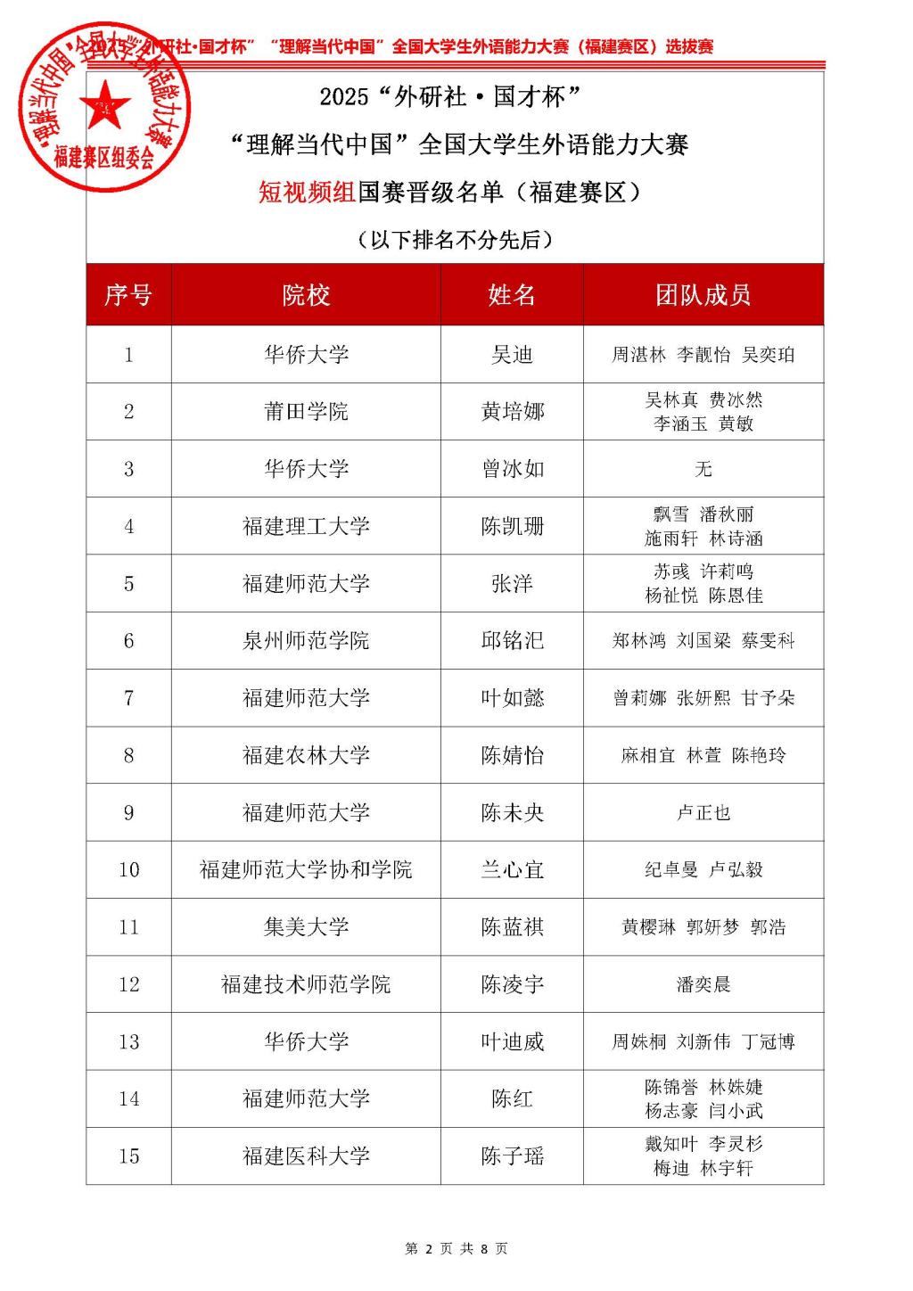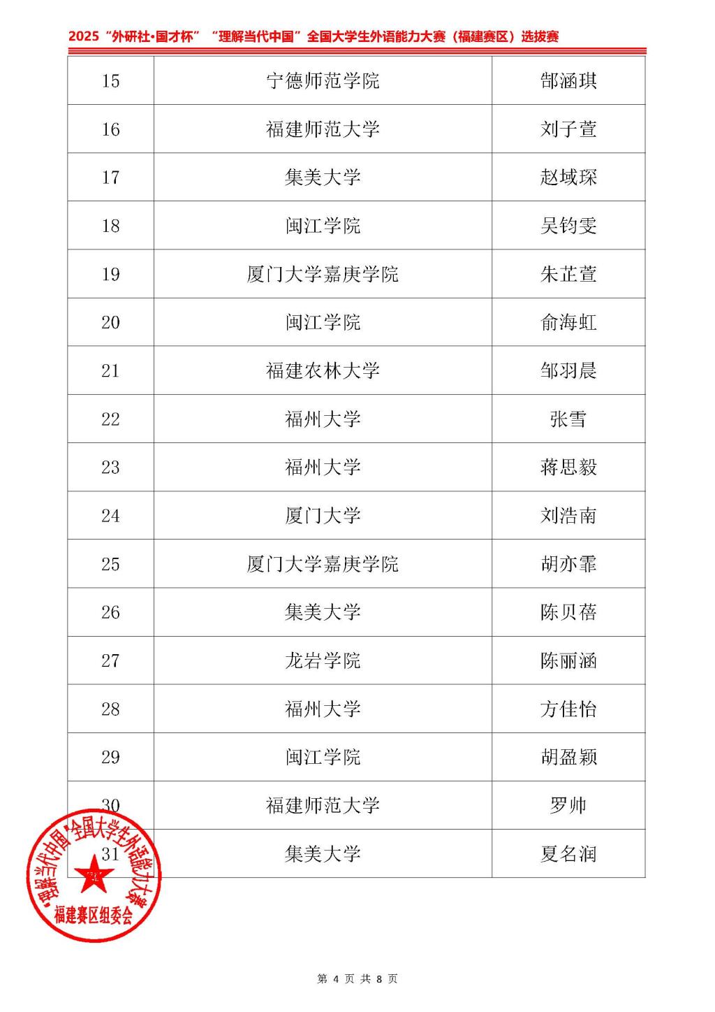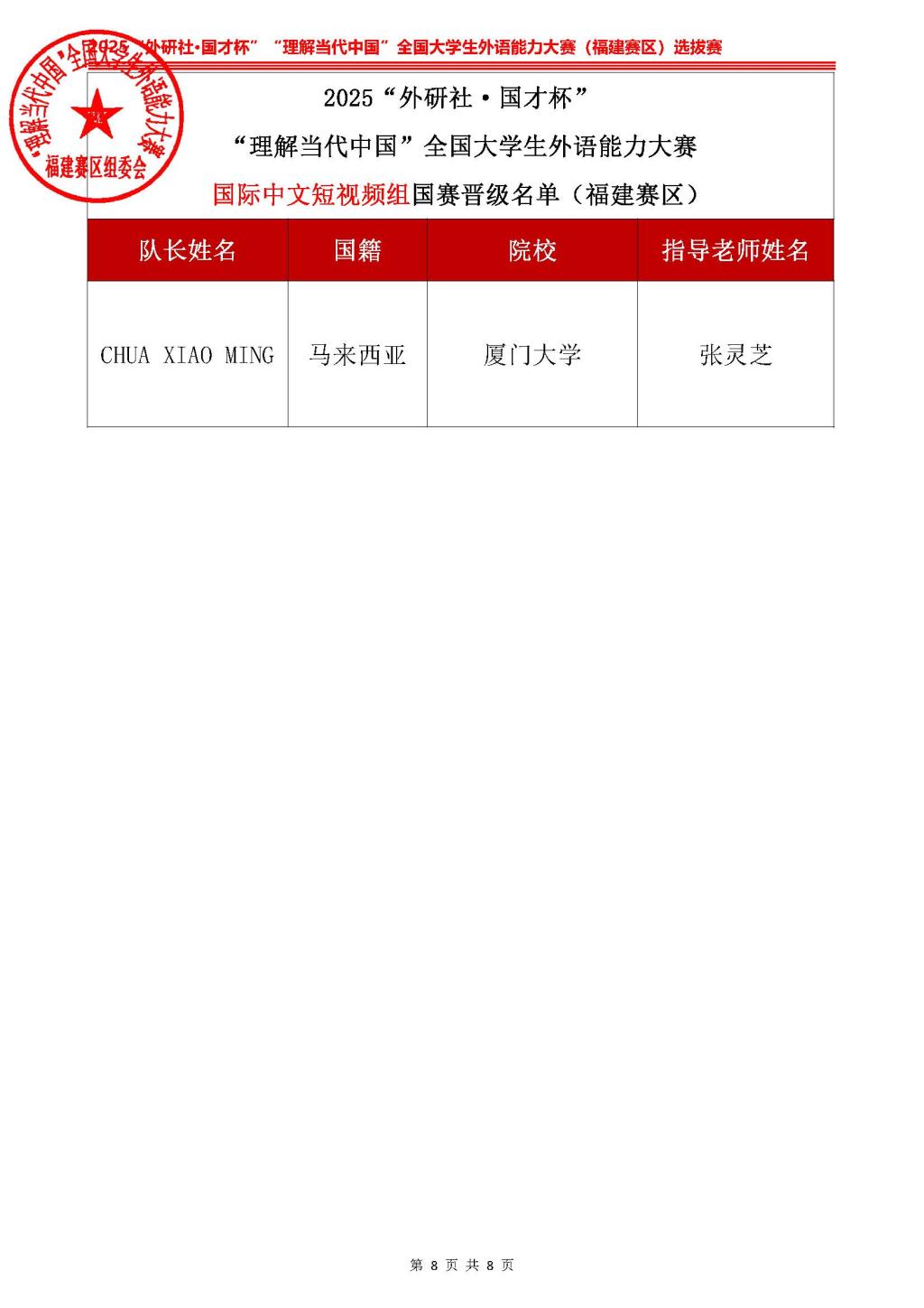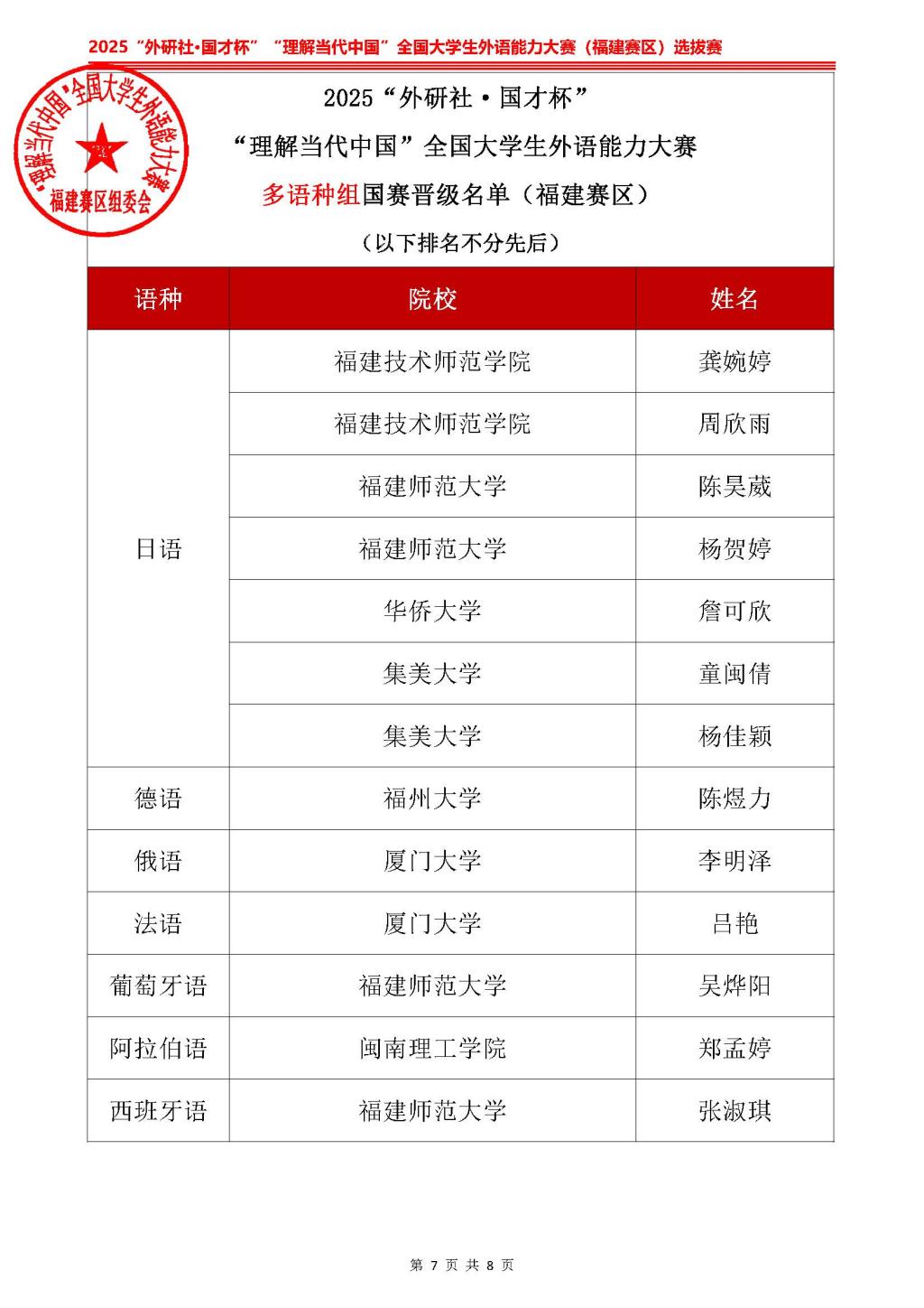 2025“理解当代中国”全国大学生外语能力大赛福建赛区选拔赛组委会关于晋级国赛名单的公告
