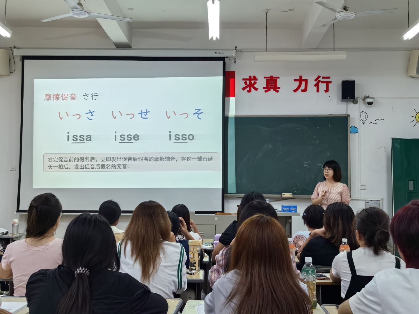 为提升教师教学能力、促进教学经验交流,近日英语系组织教师观摩了刘晖老师为2024级英语专业1班学生开设的日语(一)公开课。本次课程聚焦日语假名发音教学,凭借充实的教学内容、清晰的环节设计与高效的互动模式,为在场教师呈现了一堂高质量的示范课程。