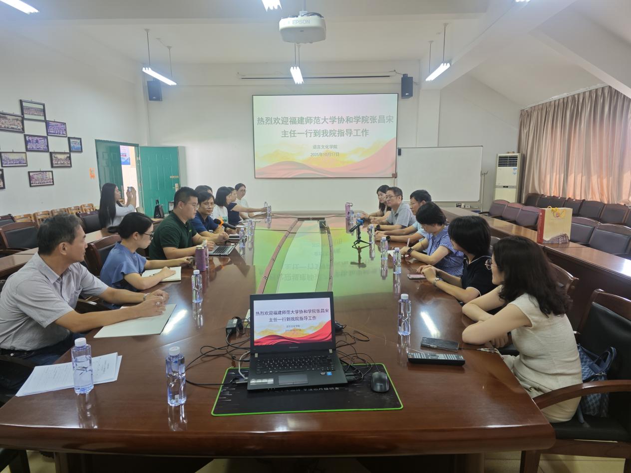 为深化商务英语专业建设,加强校际教育教学经验互通,10月17日,福建师范大学协和学院外语系主任张昌宋教授带领商务英语教研室骨干教师团队莅临我院,围绕商务英语领域人才培养与教学实践展开深度交流研讨。我院分管教学副院长黄荣生副教授、商务英语系主任张国峰及商务英语系教师参与此次活动。