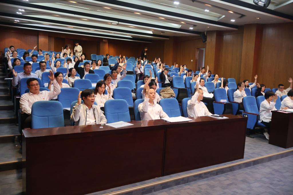 大会最后,校党委副书记江潮炳同志对大会的圆满召开和新一届“两委”班子的产生表示祝贺,并提出三点希望:一是要提高政治站位,奋勇争先再谱新篇。要以此次选举为新起点,进一步提高政治站位,牢牢把握高质量发展首要任务,凝聚发展共识,汇聚集体智慧,鼓足创业干劲。二是要增强工作本领,履职尽责再创佳绩。着力提升管党治党和办学治院能力,坚持行动至上,敢于直面问题、善于破解难题,强化抓落实的本领,努力把“两委”班子建设成为思想同心、目标同向、行动同步、责任同担的坚强领导集体。三是要勇于自我革命,拒腐防变再树新风。锲而不舍落实中央八项规定精神,持之以恒纠正“四风”问题,推进作风建设常态化长效化,共同营造风清气正的干事创业环境。
