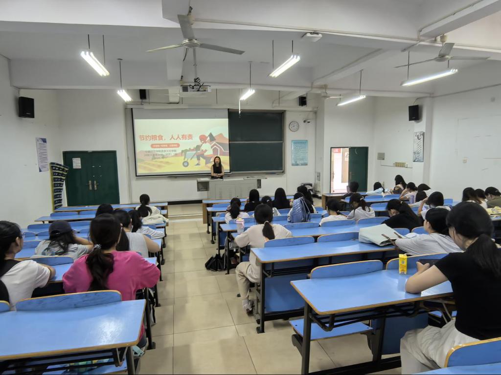 主题班会上,各班辅导员通过国际粮食安全的形势和身边的案例,让学生们深刻认识到粮食浪费的严峻性与节约粮食的紧迫性。随后,各辅导员详细讲解了《反食品浪费法》的相关条文,明确浪费粮食的不良行为所应承担的道德与社会责任,强化学生的节约意识与法治观念。在分享节约妙招环节,辅导员们结合校园餐饮实际,介绍了“按需打餐”“光盘行动”“剩菜打包”等实用方法,鼓励学生从自身做起,带动身边人共同践行节约粮食的风尚。