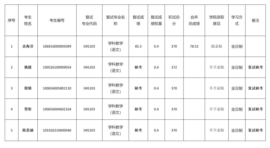 第三批调剂复试结果及拟录取名单公示