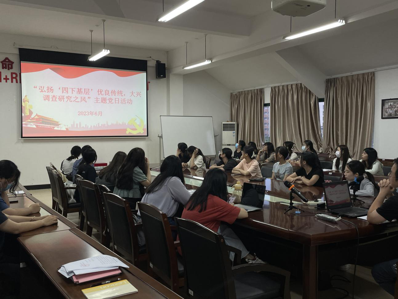 2023年6月14日,语言与文化学院学生第一党支部于求知楼AA407开展“弘扬四下基层优良传统,大兴调查研究之风 ”主题党日活动,本次活动由党支部书记林猤主持。