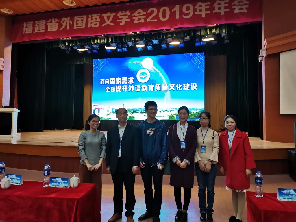 11月22日-24日我院黄荣生副院长与陈静、周罗梅、李俊宇、陈群、林艳共六位教师参加了2019年福建省外国语文学会年会。本届年会在福建医科大学举行,会议主题是“面向国家需求,全面提升外语教育质量文化建设”。六位教师一行认真听取了大会主旨发言人的讲座。北京外国语大学王文斌教授强调,高校英语专业教师应该重视基础英语教育研究,作为一名高校英语教师,学科概念要理清。广东外语外贸大学穆雷教授认为,即使是高校普通教师,也要有强烈的学科意识,学科建设事关我们每一个教师的切身利益。许家金教授和林璋教授分别就用语料库来研究文学作品与日语写作进行了探讨。六位教师还积极参加了论文分组讨论,在兄弟院校的同行面前展示了自己的研究成果,听取了分会主持专家的意见和建议。李俊宇副教授的论文《衰老、病变、抗争:论<洪堡的礼物>中的身体意识》有幸获得了本届大会的优秀论文奖。六位教师都一致认为,专家们的讲座很有启发,受益匪浅,尤其对于英语师范专业的建设极为重要。