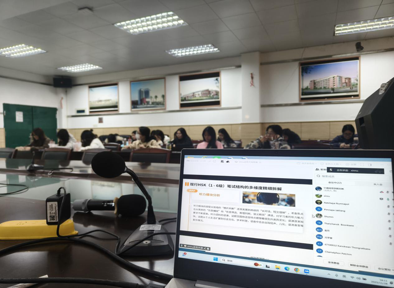 近日,我院国际中文师资培训班邀请浙江师范大学国际文化与社会发展学院常新茹博士,主讲《赋能教学与备考:HSK考试体系解析与应试策略》专题讲座,常博士结合《国际中文教育中文水平等级标准》解读HSK考试改革与教学策略,为参训学员提供理论与实操兼具的教学指导,助力提升国际中文教学能力。