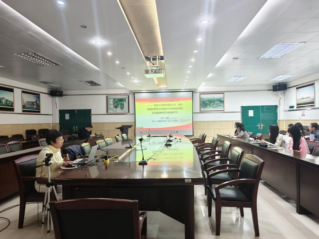 近日,我院刘艳老师为福建省“国际中文领航计划”精品项目泰国瓦莱兰大学国际中文师资培训班开展线上与线下结合课程,主题为“汉语语音特征与朗读技巧”。