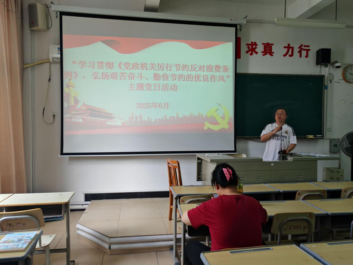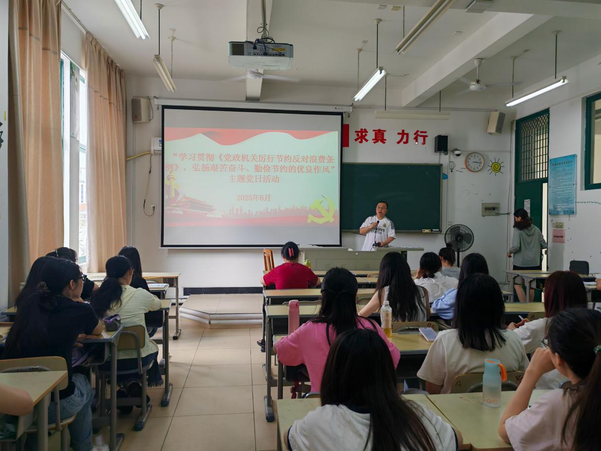 最后,林猤老师要求全体支部党员应牢固树立“过紧日子”的思想,坚决杜绝铺张浪费,带头弘扬艰苦奋斗、勤俭节约的优良传统,从节约一度电、一张纸、一滴水做起,切实发挥党员先锋模范作用。同时,要结合学习和生活实际,创新工作与学习方法,提高资源利用效率,共同营造风清气正、务实高效的生活作风。