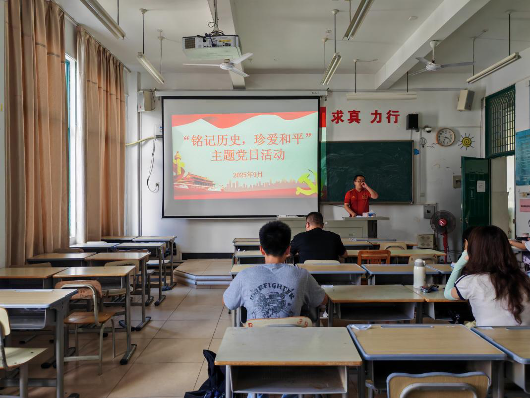 9月16日,语言文化学院学生第一党支部于AA304开展“铭记历史,珍爱和平”主题党日活动,本次活动由党支部书记林猤主持。