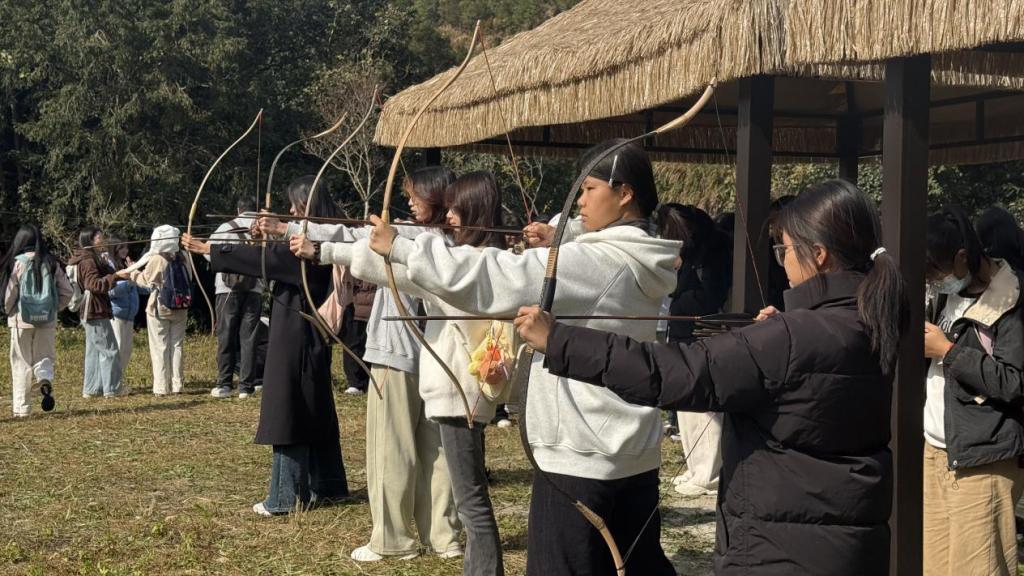 活动中,江文老师带领同学们沉浸式体验多元研学项目:从观摩栩栩如生的动植物标本,到亲手实践射箭技艺,在要领讲解与反复练习中锤炼专注力;再到探访口琴展览馆与竹制品展览馆,感受文化与工艺的交融;最后通过户外集体游戏,在协作互动中拉近彼此距离。