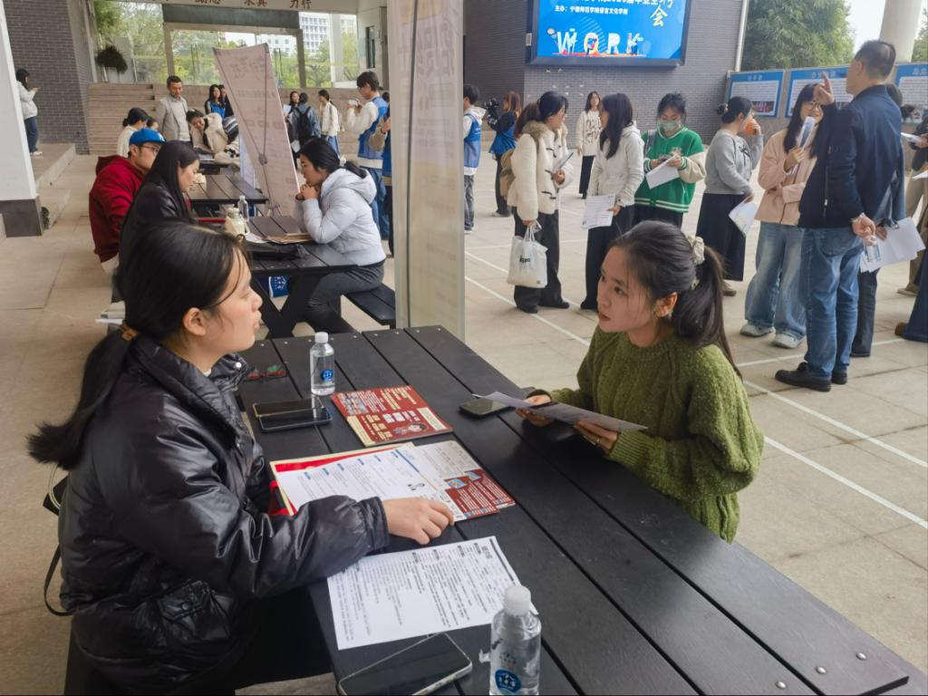 招聘会现场秩序井然,毕业生们手持精心制作的简历,穿梭于各企业展位前,驻足查看企业介绍、寻找心仪岗位。应聘学子主动与用人单位面对面沟通,详细了解企业发展、工作内容、薪资待遇等信息,各企业工作人员也耐心为同学们答疑解惑,现场交流氛围热烈。