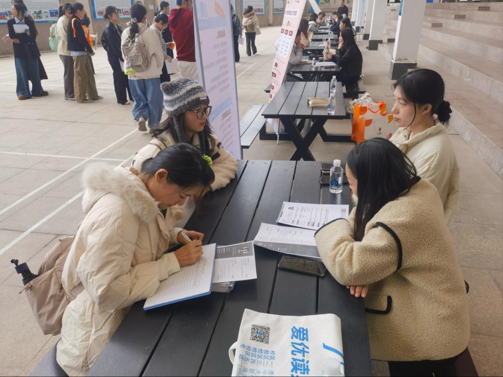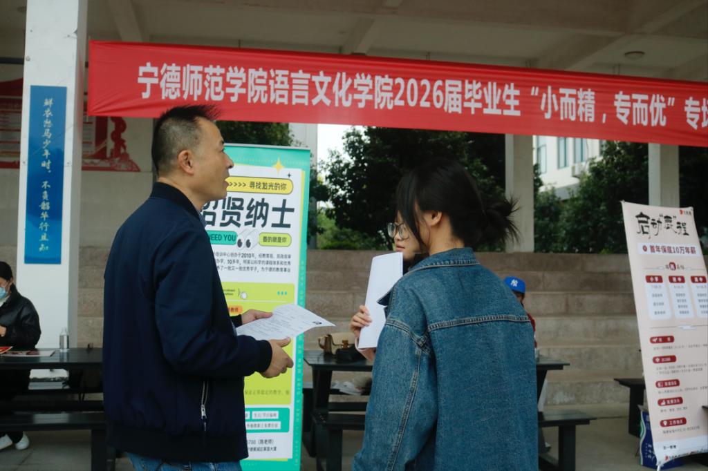 为扎实推进毕业生就业工作,搭建校企人才对接平台,12月19日下午,我院在求知楼人才小集市举办2026届毕业生“小而精,专而优”专场招聘会。本次招聘会邀请福州九色鹿培训学校、四大名补宁德校区等五家知名企业共同参与,岗位覆盖中小学学科教学、智能英语教育等多个领域。